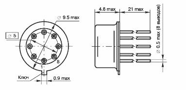 Корпус типа 301.12-1, масса не более 1,5 г.